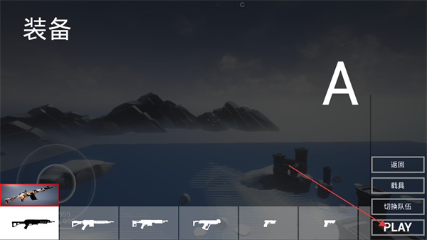 1、在裝備界面選擇武器,點(diǎn)擊PLAY進(jìn)入戰(zhàn)斗。