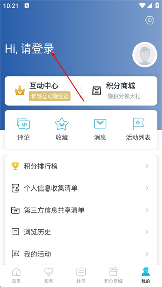 2、在個(gè)人中心頁(yè)面,點(diǎn)擊Hi,請(qǐng)登錄區(qū)域,進(jìn)入登錄選擇頁(yè)面。