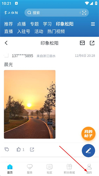 1、在印象松陽(yáng)的頁(yè)面,點(diǎn)擊底部我的選項(xiàng),進(jìn)入個(gè)人中心頁(yè)面。