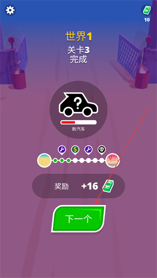 4、關(guān)卡完成后,點(diǎn)擊下一個(gè)進(jìn)入后續(xù)關(guān)卡,繼續(xù)挑戰(zhàn)。
