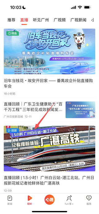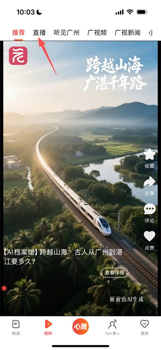1、在廣州日?qǐng)?bào)新花城首頁(yè),點(diǎn)擊底部的視聽(tīng)選項(xiàng),進(jìn)入視聽(tīng)頁(yè)面。