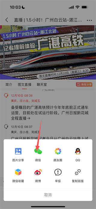 5、在分享窗口,選擇微信渠道,即可分享該直播內(nèi)容。