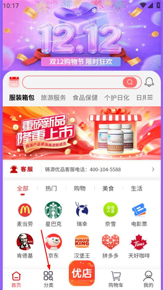 1、在鑄源優(yōu)品首頁,點(diǎn)擊底部的分類選項(xiàng),進(jìn)入商品分類頁面。