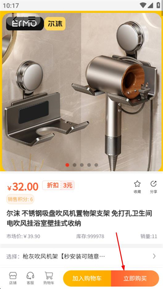 4、在詳情頁,可選擇加入購物車或立即購買,完成商品購買操作。