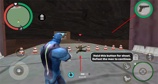 2、切換至槍械武器后,長按射擊按鈕發(fā)起遠程攻擊,消滅目標敵人以完成當前戰(zhàn)斗任務。