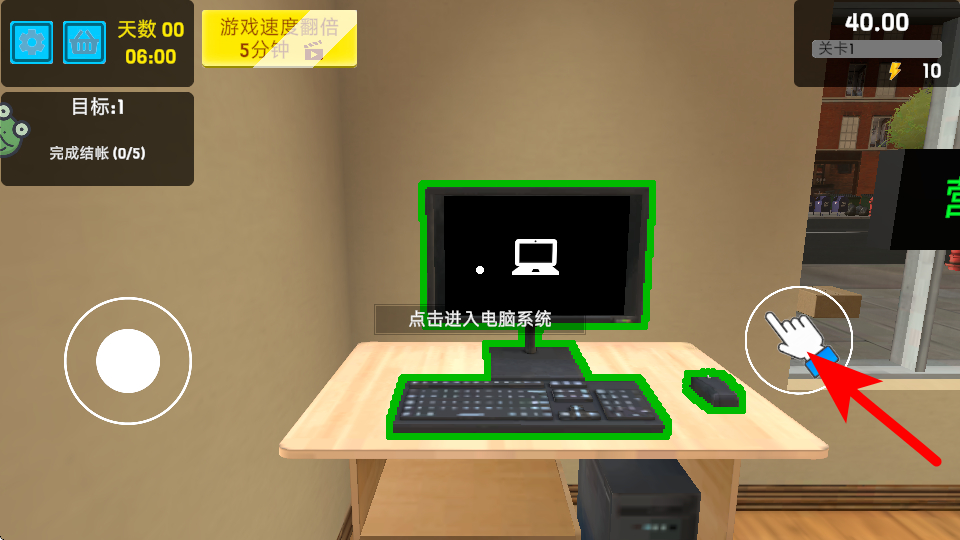 2、點(diǎn)擊電腦區(qū)域進(jìn)入電腦系統(tǒng),這是解鎖經(jīng)營權(quán)限的基礎(chǔ)操作,進(jìn)入后可訪問許可、增長等功能模塊,推進(jìn)店鋪的資質(zhì)與能力提升。