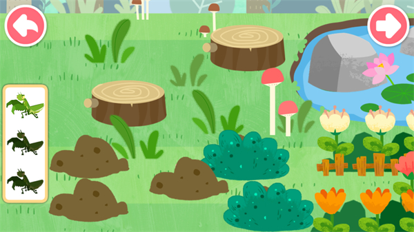 包含捉迷藏找昆蟲、益智挑戰(zhàn)學習性、昆蟲保衛(wèi)戰(zhàn)等多種玩法,不同玩法聚焦不同能力培養(yǎng),避免單一玩法帶來的枯燥,持續(xù)吸引孩子參與探索與學習。