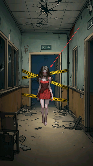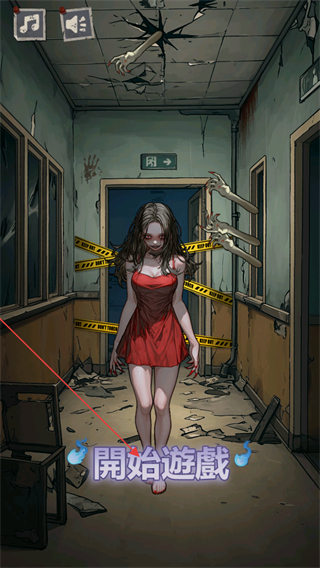 2、點(diǎn)擊開始游戲按鈕后進(jìn)入游戲場景中,啟動(dòng)界面上的女鬼會(huì)突然湊近屏幕,推進(jìn)當(dāng)前恐怖主題的場景流程。