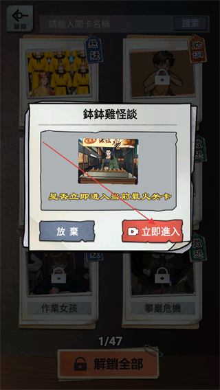4、彈出缽缽雞怪談關(guān)卡的提示框,點(diǎn)擊立即進(jìn)入按鈕,即可進(jìn)入這個(gè)當(dāng)前熱門關(guān)卡進(jìn)行體驗(yàn)。