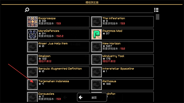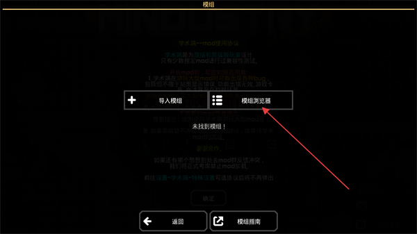 2、進(jìn)入模組頁面后,點(diǎn)擊模組瀏覽器按鈕,可進(jìn)入模組列表界面,查看游戲支持的各類第三方模組。