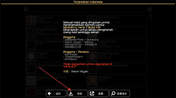 4、進(jìn)入該模組詳情頁后,點(diǎn)擊安裝按鈕,可下載并安裝此模組,安裝后可在游戲中啟用該模組的翻譯功能。