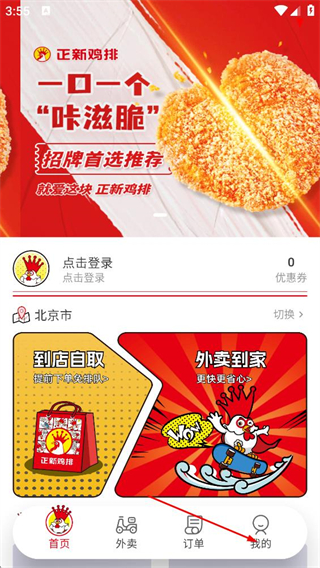 1、在正新雞排App首頁,點(diǎn)擊底部的我的選項(xiàng),進(jìn)入個(gè)人中心頁面。