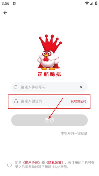 4、填寫收到的驗(yàn)證碼對應(yīng)的內(nèi)容后,點(diǎn)擊登錄,完成正新雞排賬號登錄。