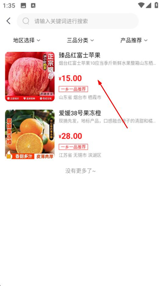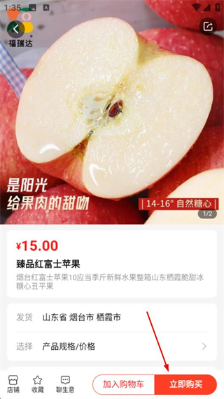 3、在商品列表頁,點擊目標(biāo)商品如臻品紅富士蘋果,進(jìn)入商品詳情頁。