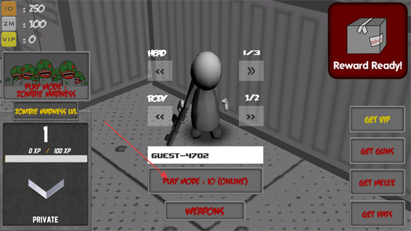 1、在游戲初始界面,點(diǎn)擊PLAY按鈕進(jìn)入在線游玩模式,同時可查看其他相關(guān)玩法與角色當(dāng)前等級進(jìn)度。