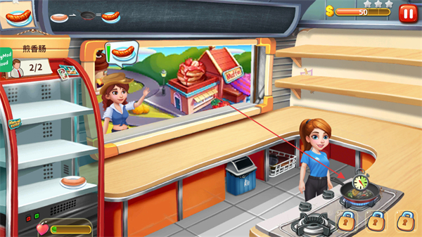 1、操作兼顧趣味性與節(jié)奏感,點(diǎn)擊屏幕即可完成食材處理、烹飪裝盤等操作,隨著餐廳升級(jí),客人流量增大,需要快速切換操作流程,考驗(yàn)手速與應(yīng)變能力。
