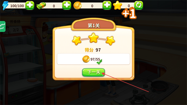 4、完成關(guān)卡目標(biāo)后,點(diǎn)擊下一關(guān)進(jìn)入后續(xù)關(guān)卡,繼續(xù)提升餐廳經(jīng)營效率。