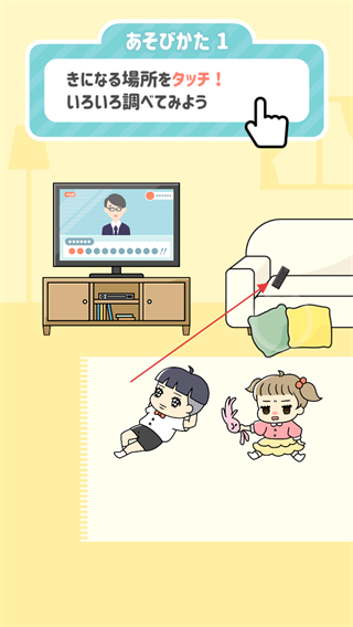 2、依據(jù)游戲上方給出的提示,點(diǎn)擊沙發(fā)上的遙控器所在位置,觸發(fā)物品獲取的相關(guān)流程。