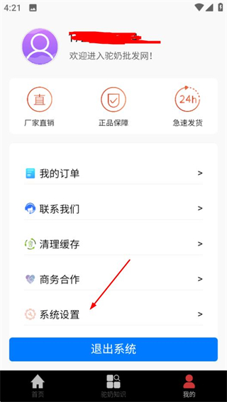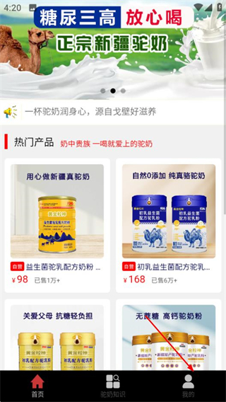 1、在駝奶批發(fā)網(wǎng)首頁,點擊底部的我的選項,進入個人中心頁面。
