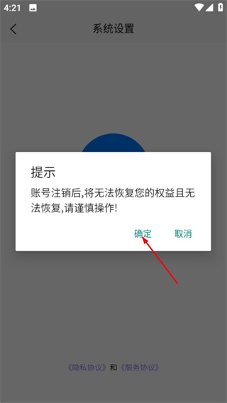 4、在提示框中,點擊確定按鈕,即可完成賬號注銷操作。