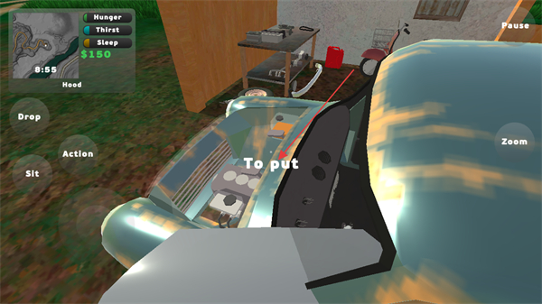 4、在汽車的引擎區(qū)域,點擊界面的Action按鈕,按照ToPut的提示進行部件放置,推進汽車修復流程。