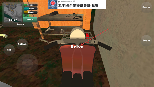 3、靠近場(chǎng)景中的踏板車,看到Drive提示后,點(diǎn)擊車輛準(zhǔn)備進(jìn)行駕駛相關(guān)操作,同時(shí)關(guān)注左上角的狀態(tài)信息。