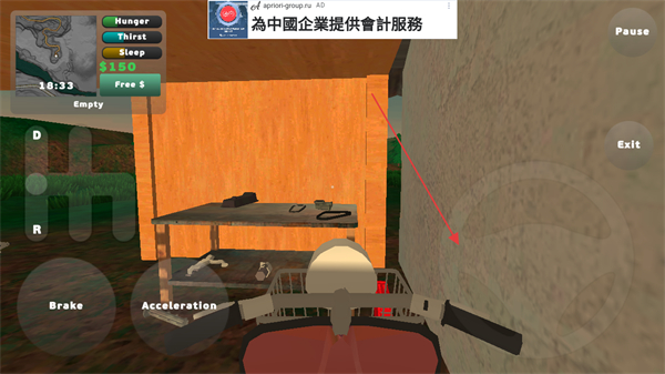 4、進(jìn)入駕駛界面后,通過Brake和Acceleration按鈕以及右下角方向盤控制車輛,若需退出可點(diǎn)擊Exit按鈕。