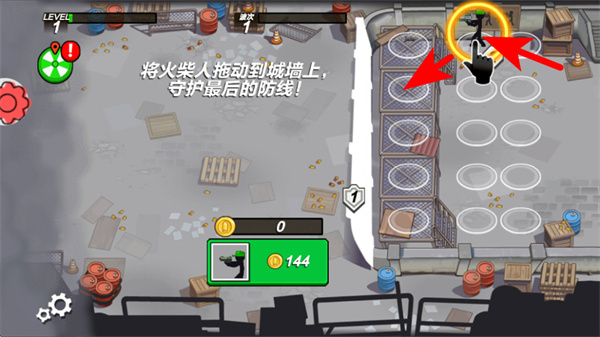 4、將火柴人拖動至城墻區(qū)域完成部署,這是構(gòu)建最終防線的重要操作,部署后可讓單位駐守關(guān)鍵區(qū)域,抵御敵方進攻,保障關(guān)卡的防守安全。