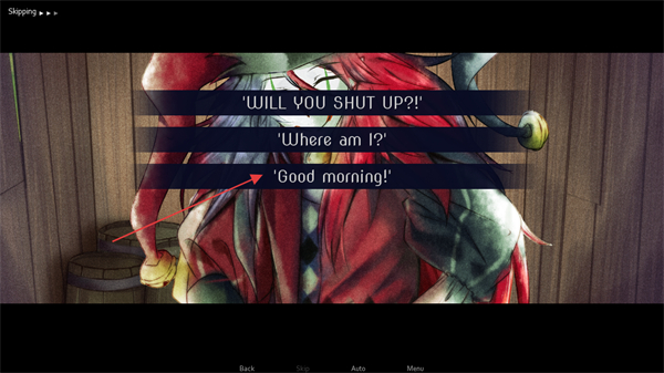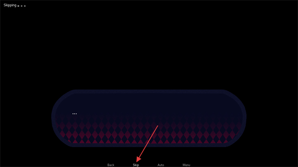 2、進(jìn)入游戲劇情界面后,查看展示的對(duì)話(huà)內(nèi)容,可通過(guò)下方的Skip功能調(diào)整劇情推進(jìn)節(jié)奏。