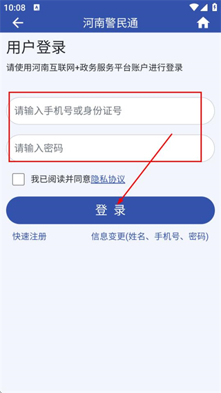 3、在用戶登錄頁面,填寫手機(jī)號和密碼,點(diǎn)擊登錄,完成賬號登錄。