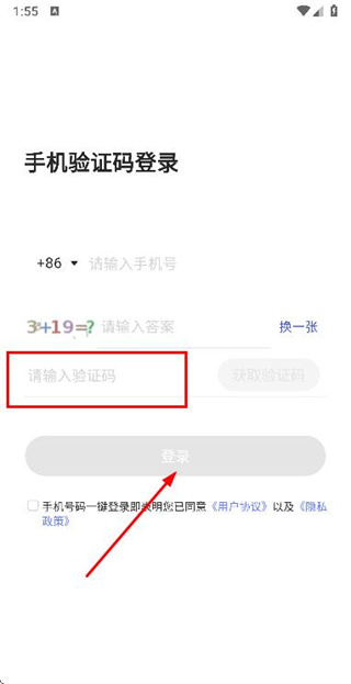 3、在驗(yàn)證碼輸入框中填寫收到的驗(yàn)證碼,點(diǎn)擊登錄完成賬號(hào)的登錄操作。