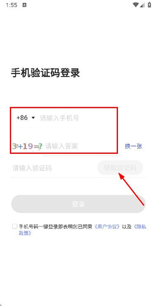 2、在手機(jī)登錄頁面填寫手機(jī)號(hào)和驗(yàn)證答案,勾選協(xié)議后,點(diǎn)擊獲取驗(yàn)證碼。