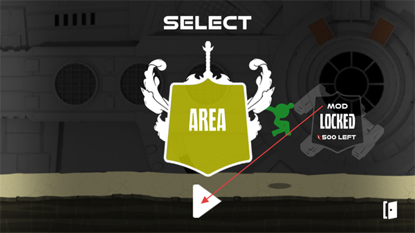1、點(diǎn)擊SELECT界面的開(kāi)始按鈕,進(jìn)入游戲區(qū)域,操控綠色火柴人開(kāi)始行動(dòng)。