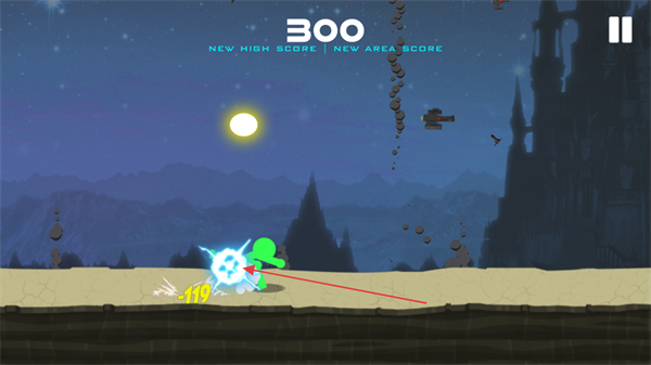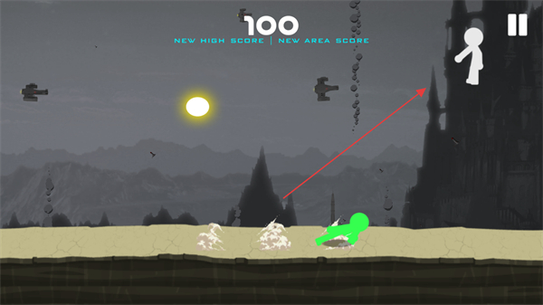 2、操控火柴人在場(chǎng)景中移動(dòng),躲避障礙并積累分?jǐn)?shù),達(dá)成100分的新記錄。