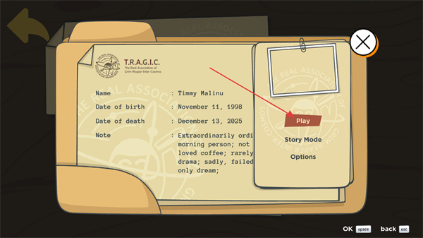 1、在角色檔案界面點(diǎn)擊Play,進(jìn)入游戲故事模式,開始探索場(chǎng)景。