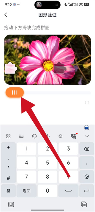 3、在圖形驗證頁面,拖動下方滑塊完成拼圖驗證,通過后觸發(fā)驗證碼的獲取流程。