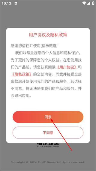1、在用戶協(xié)議及隱私政策彈窗中,點(diǎn)擊同意,進(jìn)入登錄頁(yè)面。
