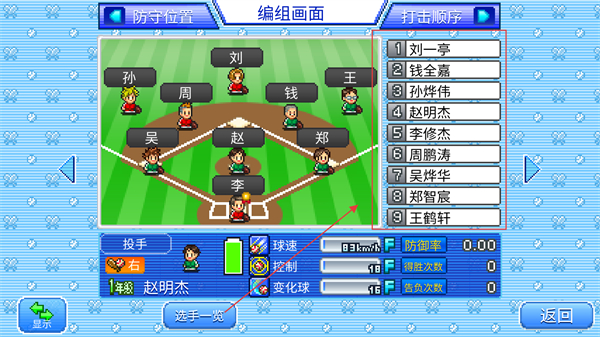 3、切換到打擊順序標簽,查看當前擊球手排列,點擊選手一覽可對比選手屬性。