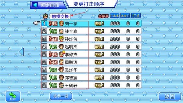4、進入變更打擊順序界面,通過觸摸交換調(diào)整擊球位次,優(yōu)化進攻節(jié)奏,調(diào)整后點返回確認陣容。