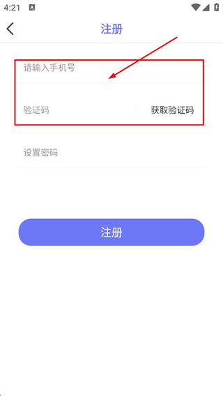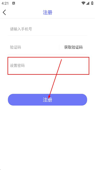 4、在注冊頁面,設(shè)置密碼后點(diǎn)擊注冊按鈕,完成該APP的賬號注冊流程。