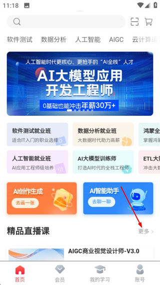 1、在學(xué)掌門(mén)首頁(yè),點(diǎn)擊精品直播課右側(cè)的更多選項(xiàng)進(jìn)入選課中心頁(yè)面。