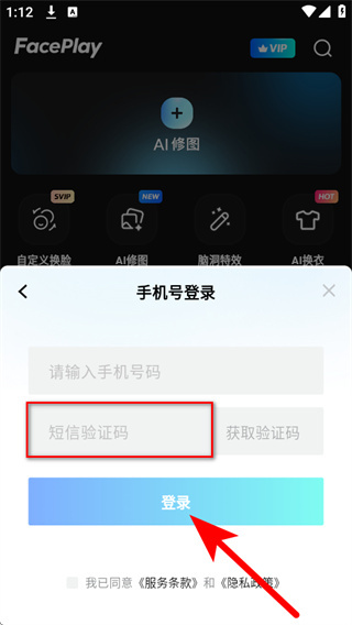 4、將收到的驗(yàn)證碼填入驗(yàn)證碼框,同時(shí)勾選相關(guān)協(xié)議后,點(diǎn)擊登錄,即可完成賬號(hào)登錄。
