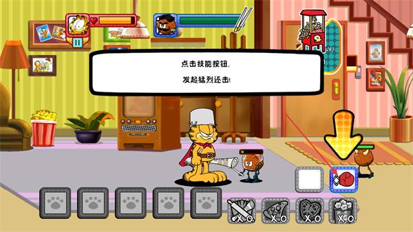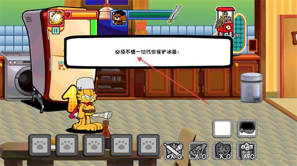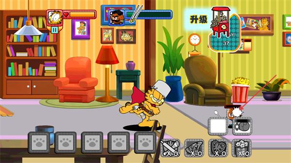 3、游戲過程中,加菲貓會自動對前方的敵人丟叉子進行攻擊,以更好地推進后續(xù)的游戲流程。
