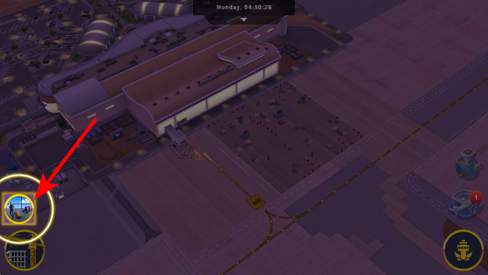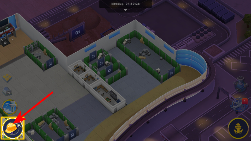 1、在機(jī)場主界面,點(diǎn)擊紅色箭頭指向的航站樓入口按鈕,進(jìn)入航站樓內(nèi)部場景,解鎖航站服務(wù)設(shè)施的關(guān)鍵操作,推進(jìn)功能建設(shè)。