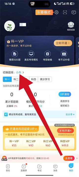 3、在個(gè)人中心頁面中,找到切換題庫的選項(xiàng)并點(diǎn)擊,進(jìn)入題庫選擇頁面。