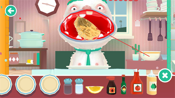 4、把制作好的面條投喂給當(dāng)前角色,還可搭配底部調(diào)料調(diào)味,完成該角色的用餐環(huán)節(jié)。