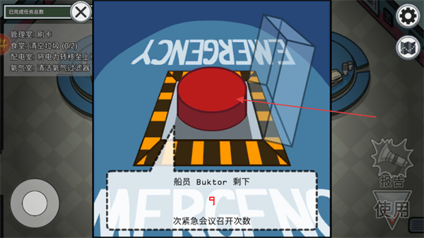 2、觸發(fā)緊急會(huì)議時(shí),點(diǎn)擊紅色按鈕參與會(huì)議,界面會(huì)顯示剩余船員數(shù)與會(huì)議次數(shù)。