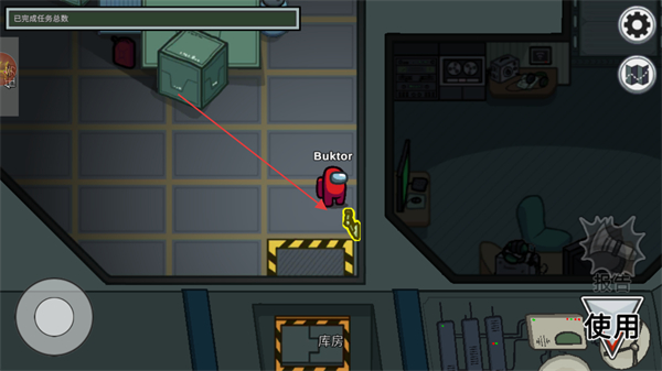 4、移動(dòng)角色到庫(kù)房的互動(dòng)點(diǎn)黃色標(biāo)記處,完成對(duì)應(yīng)任務(wù)環(huán)節(jié),推進(jìn)游戲進(jìn)度。