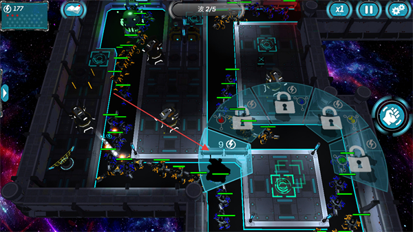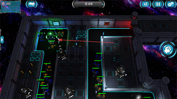 3、調(diào)整防御塔的攻擊目標(biāo),優(yōu)先集火密集敵人,推進(jìn)第2/5波的防御進(jìn)度。