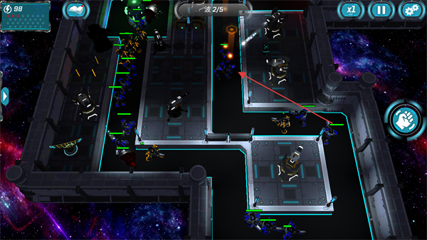 1、操控防御塔攻擊路徑上的敵人,清理當(dāng)前波次的敵方單位,積累資源。